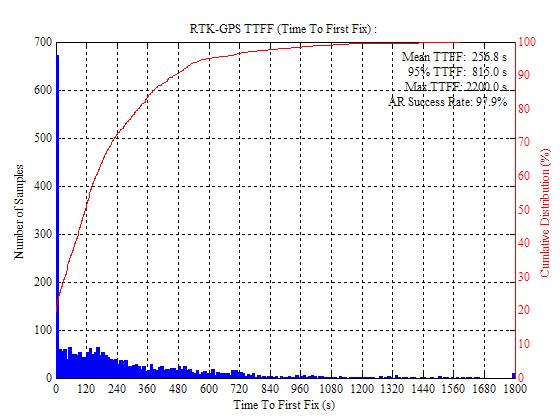 Distribution of L1 RTK-GPS TTFF with Ambiguity