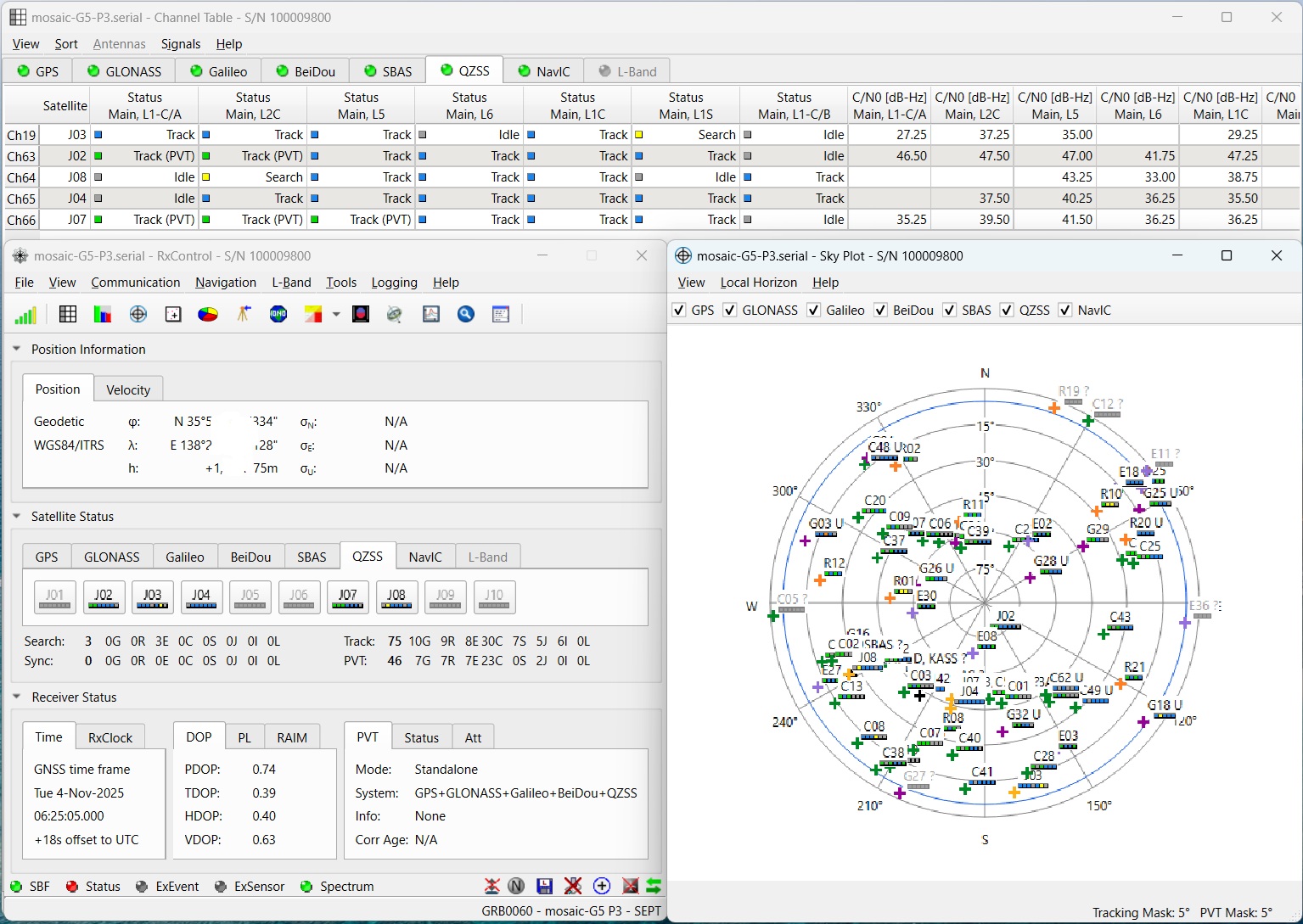 とりあえず動作確認を。RxControl 25.0.0 をダウンロードしてインストール。メニュー Navigation - Advanced User Settings - Trackingで全衛星、全信号をチェック。追尾衛星数75、PVT衛星数46。QZSSはL1C/A, L2C, L5, L6, L1C, L1S, L1C/Bが受かっている。L6は4CH同時受信だが、L6DなのかL6Eなのかは不明。GPS L2P(Y)、L1Cも受かっている。L1Cをサポートした市販受信機は初めて見た。GLONASS L1OCとL2OC、QZSS L5S、NavIC L1-SPSは信号が選べない。ブラウザで192.168.3.1にアクセスしても応答がないので、ウェブI/Fはなくなっちゃったのかな。とてもコンパクトで、高性能の受信機モジュールなのだが、もう少し安くなればよいのだけど (参照, $387.01 + shipping $13.49 + 通関/DHL手数料 \5380)。