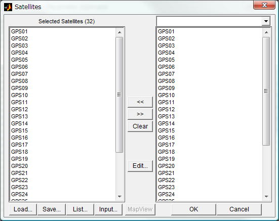 | Save... | Save the satellite list to a text file. Specify the saved file path by the file selection dialog shown when the button pushed. |