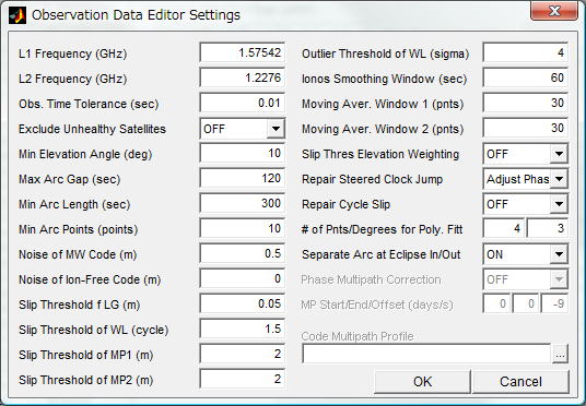 Set observation time tolerance ttol (s). If ep-ttol/2 < rtime < ep+ttol/2, the observation data at the reception-time