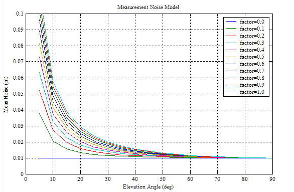 | Meas. Noise Elev. Angle Factor | Set the weighting factor of measurement noise by elevation angle. If setting it 0, the weighting factor is always 1. If setting it 1, the weighting factor is 1/sin(El). Refer Measurement Noise Factor. |