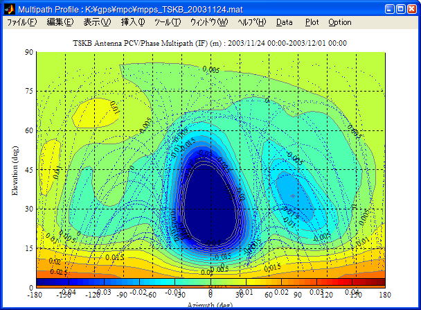 Elevation/Azimuth angle plot of antenna PCV/carrier-phase multipath
