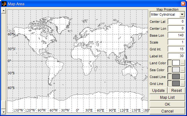| Map Area... | 地図表示条件ダイアログを表示し地図表示条件を設定します。 | |