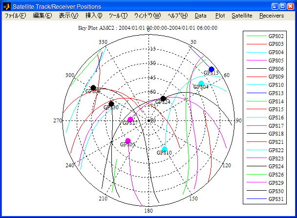 | Receiver Skyplot | 衛星方向軌跡をスカイプロット表示します。 | |