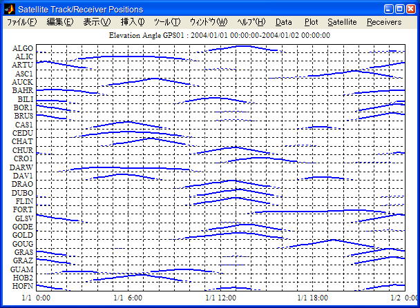 | Elevation Angle by Sats | 受信機毎衛星仰角を表示します。 | |