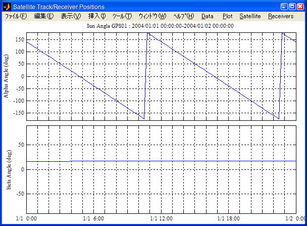 | Satellite-Sun Angle | 衛星-太陽角をグラフ表示します。 | |