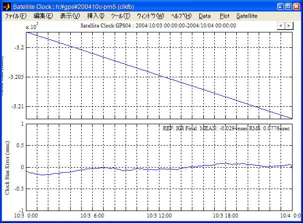 | Clock Drift | 衛星/受信機時計ドリフトの値をグラフ表示します。 | |