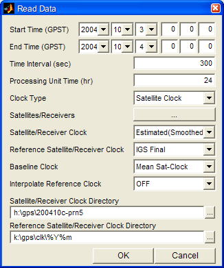 | Time Interval | 読み込む衛星/受信機時計データの時間間隔(秒)を指定します。 | |