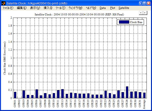 | Clock Error by Dates | 日付毎の衛星/受信機時計バイアスRMS誤差をバーグラフ表示します。 | |