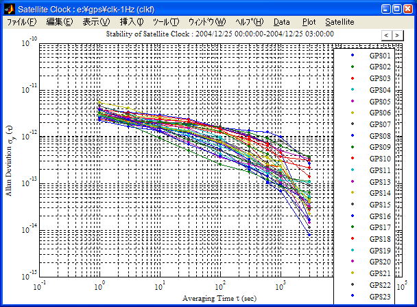 | Clock Stability | 衛星/受信機時計安定度(Allan Deviation)グラフを表示します。 | |