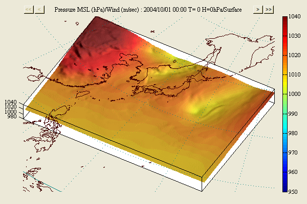 JMA RSM 海面更正気圧 2004/10/1 00:00-11/1 00:00 (UTC) 動画表示
