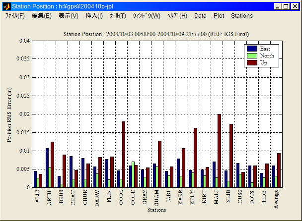 IGS AC JPL軌道/時計を使用したPPP測位結果
