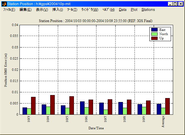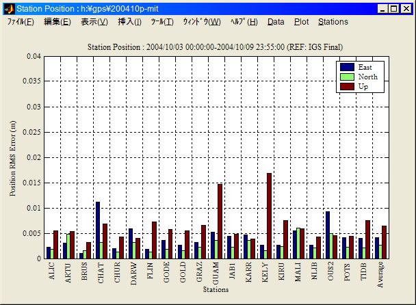 IGS AC MIT軌道/時計を使用したPPP測位結果