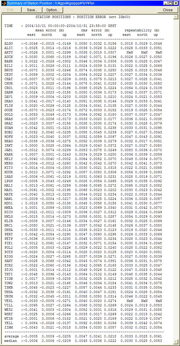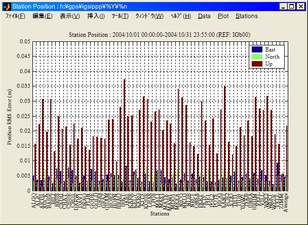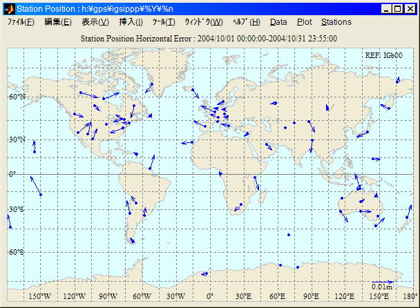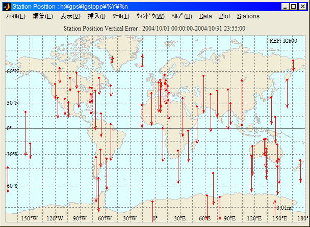 IGS À•WŠî€‹Ç(65‹Ç)PPP‘ªˆÊŒ‹‰Ê(2004/10/1`31) (IGb00À•W”äŠrAÀ•W•ÏŠ·•ⳂȂµ) IGS Reference Frame Stations (65 stas) PPP result (wrt IGb00, without Transformation Correction)