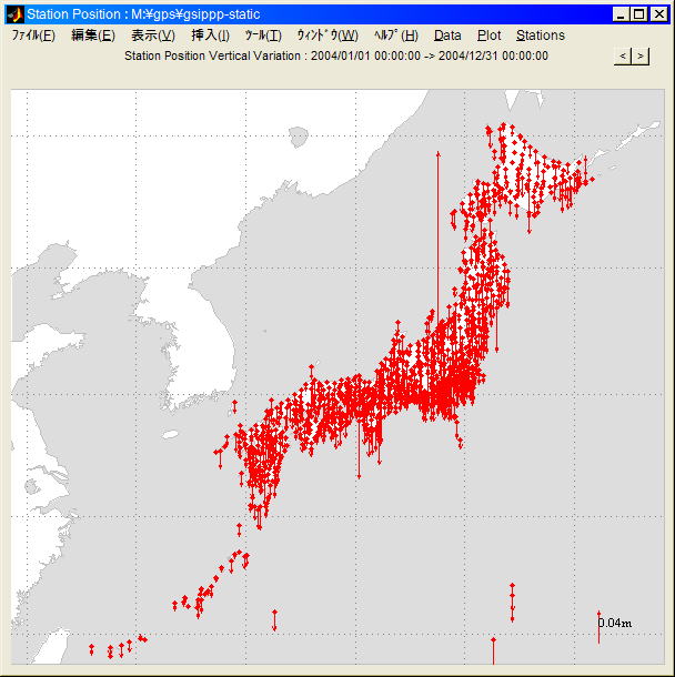 観測局位置垂直変動 (2004/1/1→12/31)